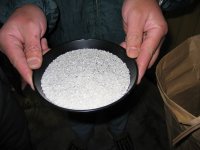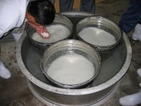 掛米が蒸しあがりました | ■ | 冷やされた米がでてきます |