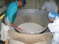 搾り機から勇翔が出てきましたよ | もろみが硬くならないように混ぜる |