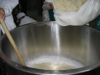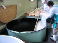 酒米を入れてます | 掛米を入れて混ぜる。重労働です |
