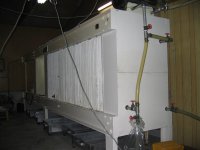 コンプレッサーでモロミを搾り機へ送り出す | ■ | 巨大な搾り機です |