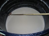 留添前のもろみです | ■ | 昨日より約倍の大量の米をいれました |