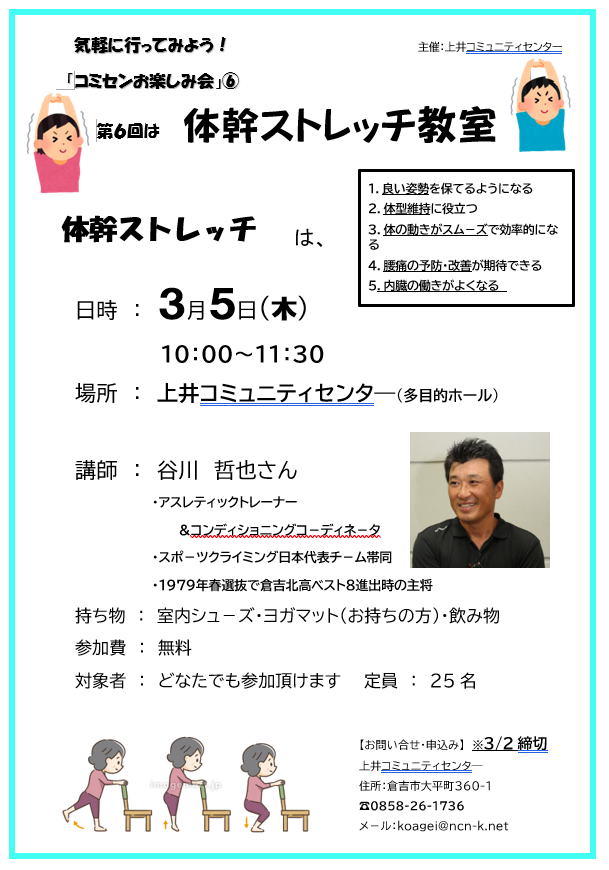 | 「コミセンお楽しみ会⑥「体幹ストレッチ教室」開催します! |