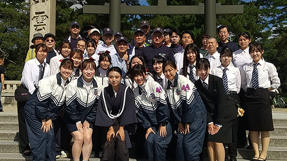 出雲大学駅伝に出場した母校の応援に校友会(卒業生)と甫水会(保護者会)で行きました。出雲大社の鳥居前で応援指導部と今年も会えたねと記念撮影し、スタートの神門通りでは応援指導部の熱いエールと一緒に声援を送りました。次に3区・4区に移動し応援、その後ゴールの出雲ドームでアンカーを迎えました。閉会式後に酒井監督から応援に駆け付けた関係者に対して、箱根では必ずシード権を確保し来年も出雲に戻ってくると熱い言葉がありました。